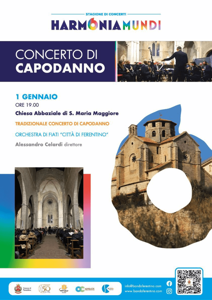 Si terrà, come tradizione, il 1° gennaio, nella chiesa abaziale di Santa Maria Maggiore a Ferentino, con inizio alle ore 19, nell’ambito della stagione concertistica Harmonia Mundi. Il Concerto di Capodanno dell’Orchestra di fiati sarà diretto da Alessandro Celardi