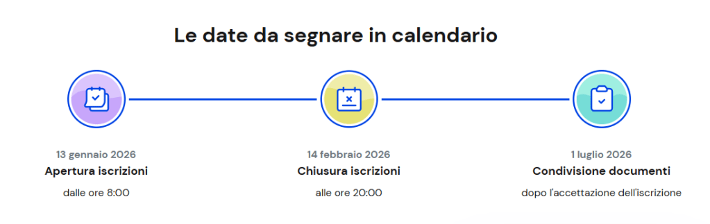 Dal 13 gennaio al 14 febbraio 2026 saranno aperte le iscrizioni alle prime classi per l’anno scolastico 2026/2027. Le domande per il I e il II ciclo di istruzione potranno essere presentate online, attraverso la piattaforma Unica, all’indirizzo: https://unica.istruzione.gov.it/it/orientamento/iscrizioni