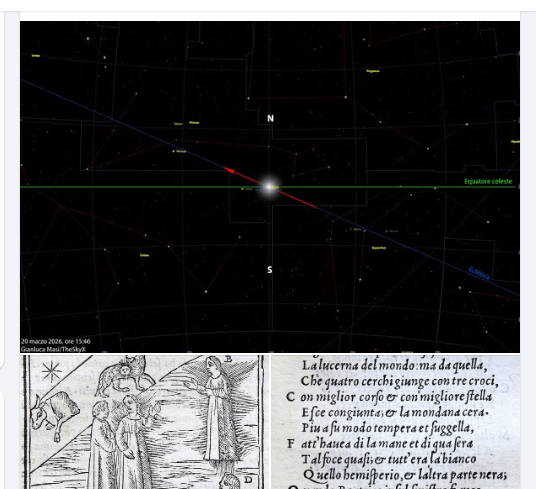Alle ore 15:46 di oggi, 20 marzo 2026, nel suo moto apparente tra le stelle lungo l’eclittica (ovvero la proiezione in cielo dell’orbita della Terra), il Sole incrocia da Sud verso Nord l’equatore celeste (ossia la proiezione in cielo dell’equatore della Terra).