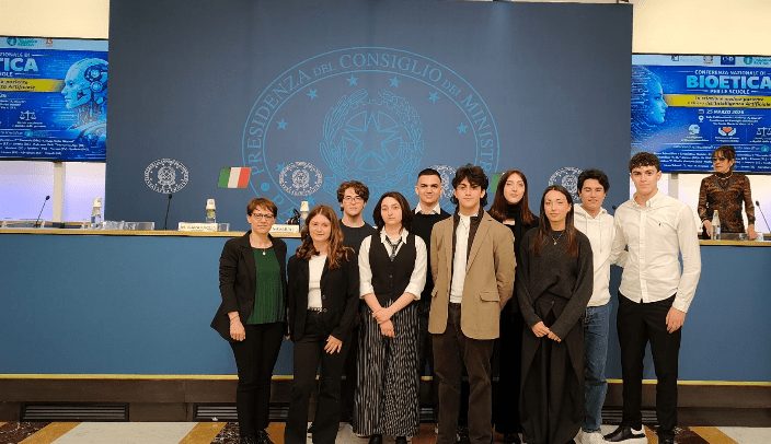 Nove studenti della classe IV C del Liceo scientifico di Ceccano, accompagnati dalla prof. Mirra, hanno rappresentato la Regione Lazio nel convegno nazionale sulla Bioetica presso la Presidenza del Consiglio a Roma. I ragazzi avevano partecipato ad una selezione su una tematica molto delicata e complessa: il rapporto tra scienza (medicina) ed etica (paziente) in un’epoca dominata dall’intelligenza artificiale. Il gruppo ha scelto di coinvolgere coetanei e personale docente, focalizzando l’indagine su una prospettiva antropologica scientifica. formulando un sondaggio per capire i modelli di comportamento quotidiano sia di alunni che di professori riguardo all’utilizzo dell’intelligenza artificiale (AI) per l’autodiagnosi. Tra le domande a cui hanno risposto docenti e alunni, di particolare rilievo quella sull’utilizzo della rete come fonte di studio e di ricerca riguardo alle malattie e alle autodiagnosi. Successivamente è stato realizzato un dialogo tra medico e paziente, accompagnato da un sottofondo musicale dal vivo, con cui si cerca di evidenziare il valore etico e professionale della medicina nell’era dell’AI, che impone nuove sfide e interrogativi importanti sul ruolo del medico oggi, sollecitato dalle spinte tecnologiche da un lato e dalla salvaguardia della deontologia professionale e umana nel rapporto medico-paziente dall’altro. Fino a che punto l’AI rappresenta una rivoluzione e una conquista, seppure importante per le scoperte e i traguardi tecnologici? L’obiettivo per il futuro è, quindi, quello di imparare a navigare sul web e di utilizzare l’AI in modo più consapevole e intelligente, da intendersi esclusivamente come supporti informativi e non diagnostici. Si ribadisce, pertanto, la centralità del professionista sanitario quale garante del benessere e custode dell’insostituibile relazione umana tra medico e paziente.